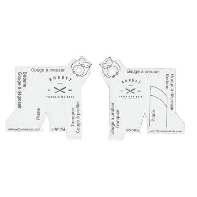 Développé en partenariat avec le site d'enseignement en ligne www.jetournelebois.com c'est  l’accessoire indispensable pour vérifier le bon angle d’affûtage des outils de base, avant et après l’affûtage.