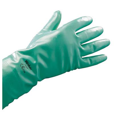 • Gants trempés finition siliconée, intérieur floqué coton, paume et doigts structure relief, manchette finition bord droit. Longueur 300 mm, épaisseur 0,40 mm.