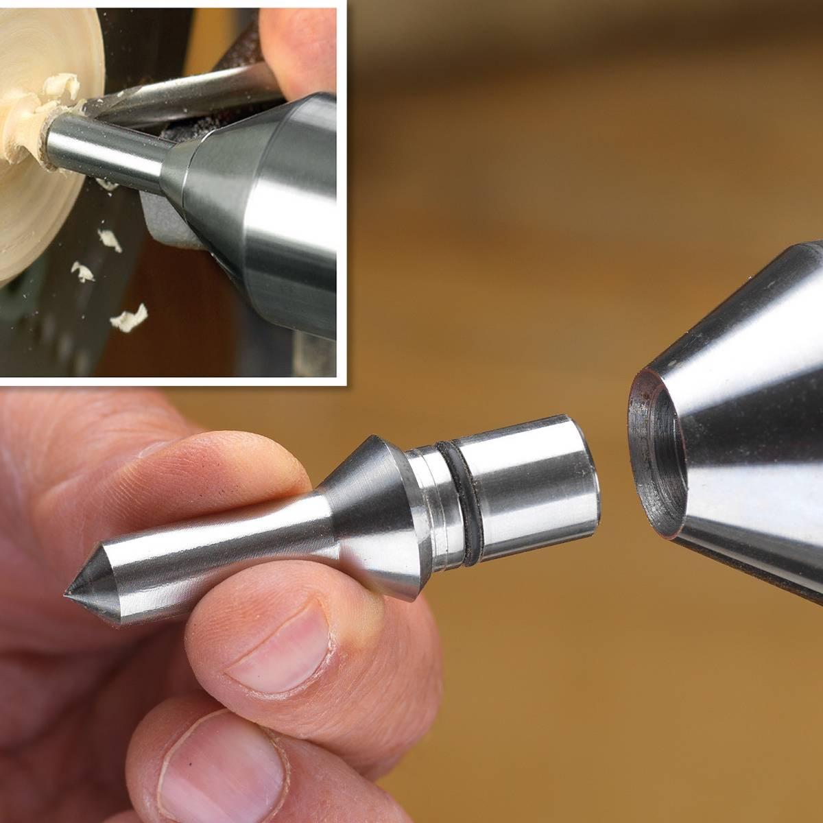 • Embout pointe traditionnelle : cet embout comprend une pointe à 60º, pour permettre une pénétration efficace dans la pièce à tourner. Il est idéal pour un tournage entre pointes et peut également être utilisé pour supporter des bols montés sur poupée mobile.