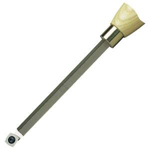 • Cet outil est constitué d'un corps en acier de section carrée avec une plaquette interchangeable en acier rapide, de forme ronde ou carrée, fixée par une vis.