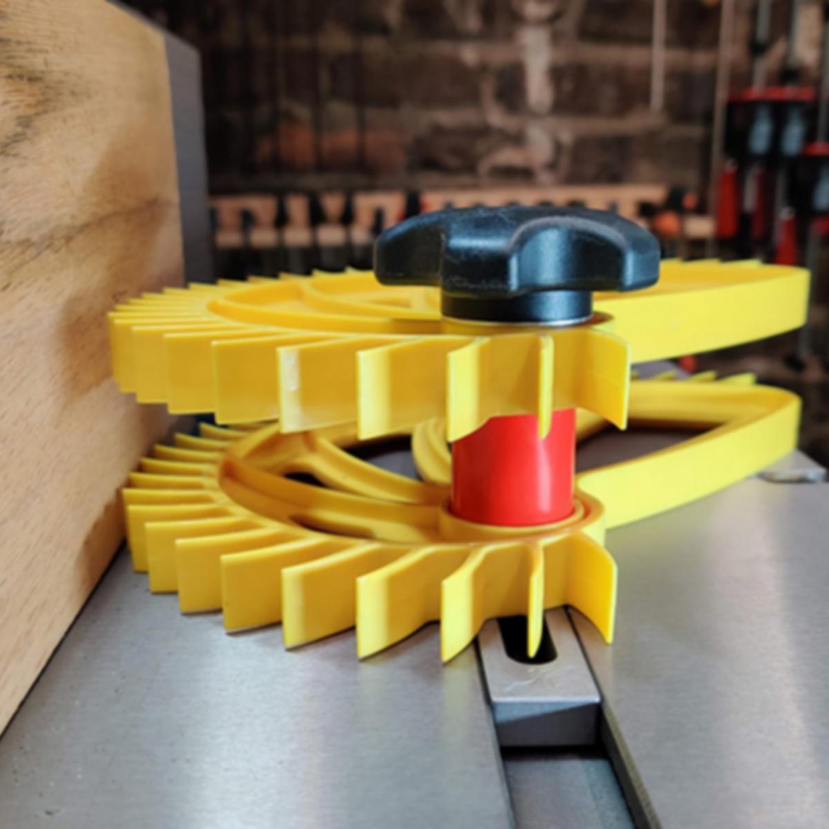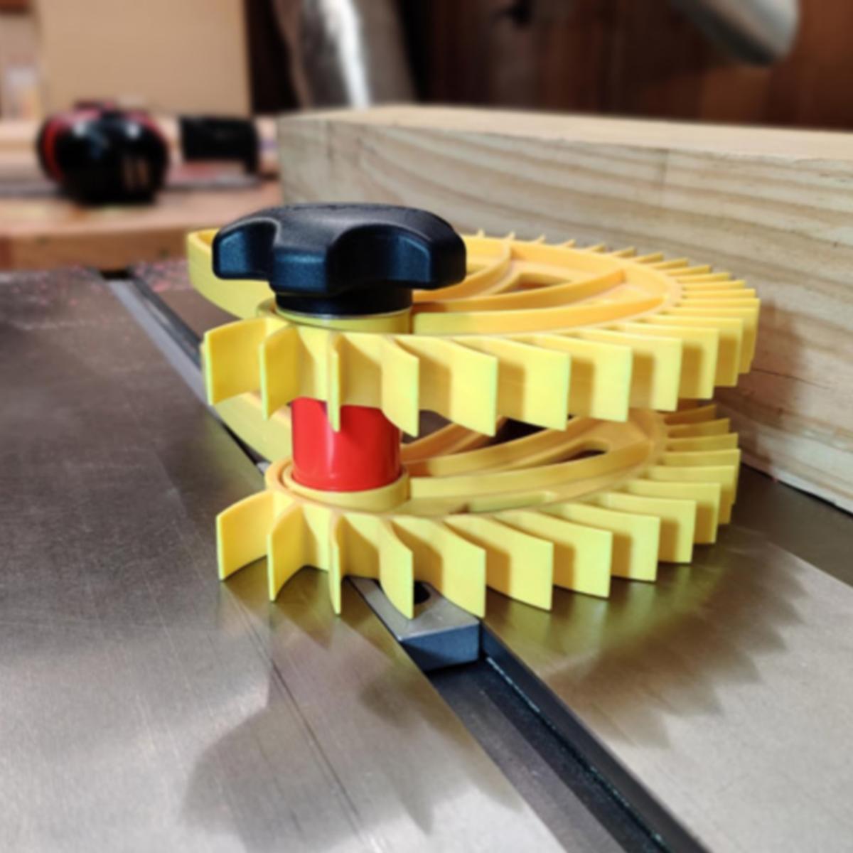 Sa conception brevetée comprend une molette unique avec un seul point de pivotement et un corps en forme de spirale qui permet d'ajuster rapidement et facilement le peigne à toutes tailles de pièce de bois travaillée.