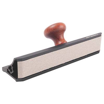 2. L'abrasif autocollant est mis en place sur le chant du rabot. Les deux extrémités, légèrement en retrait, évitent les déchirures. Tous les abrasifs autocollants conviennent au rabot, y compris les abrasifs classiques posés sur un ruban double face. Véritas propose plusieurs grains dans un papier en oxyde d'aluminium recouvert de stéarate de zinc pour la résistance et pour éviter l'encrassement.