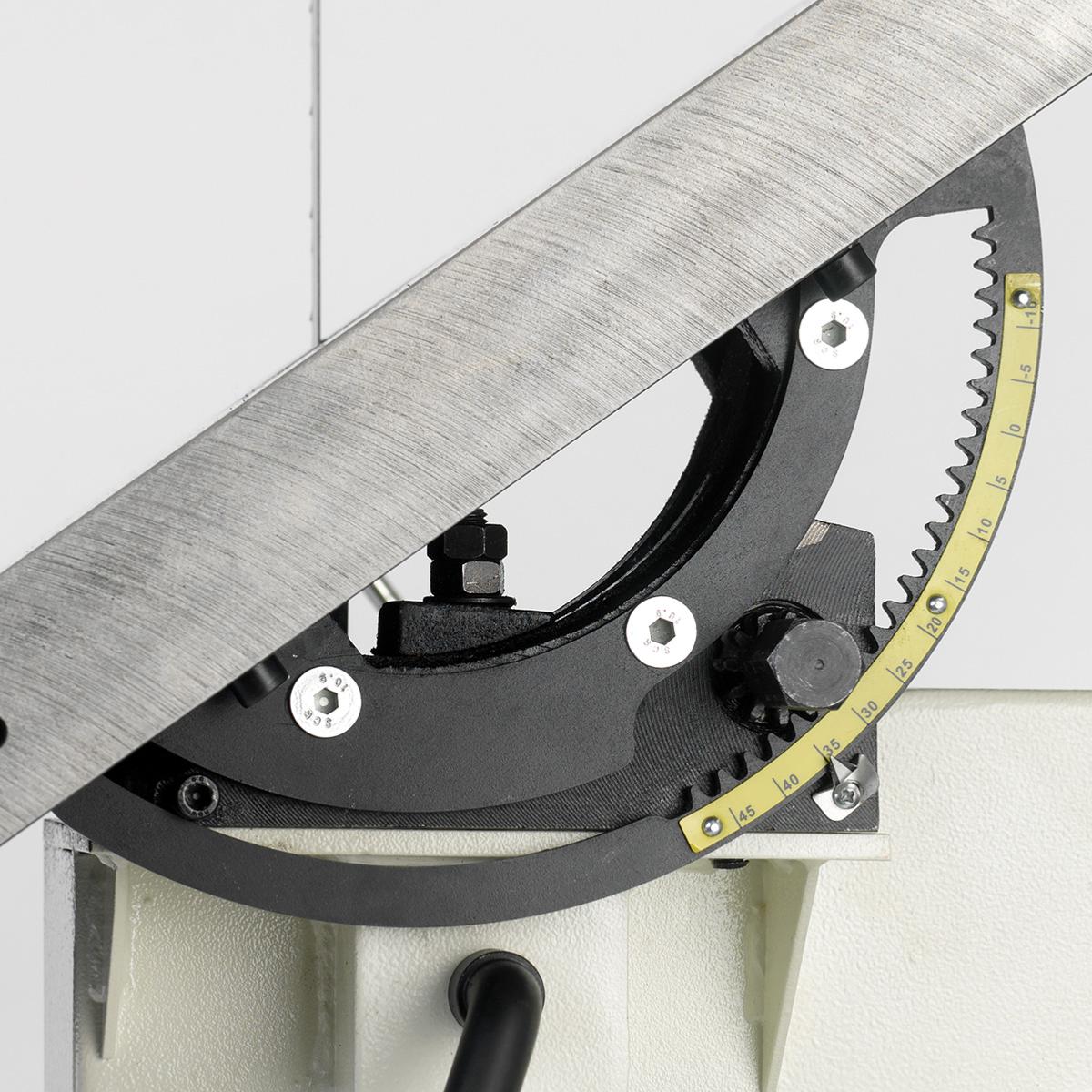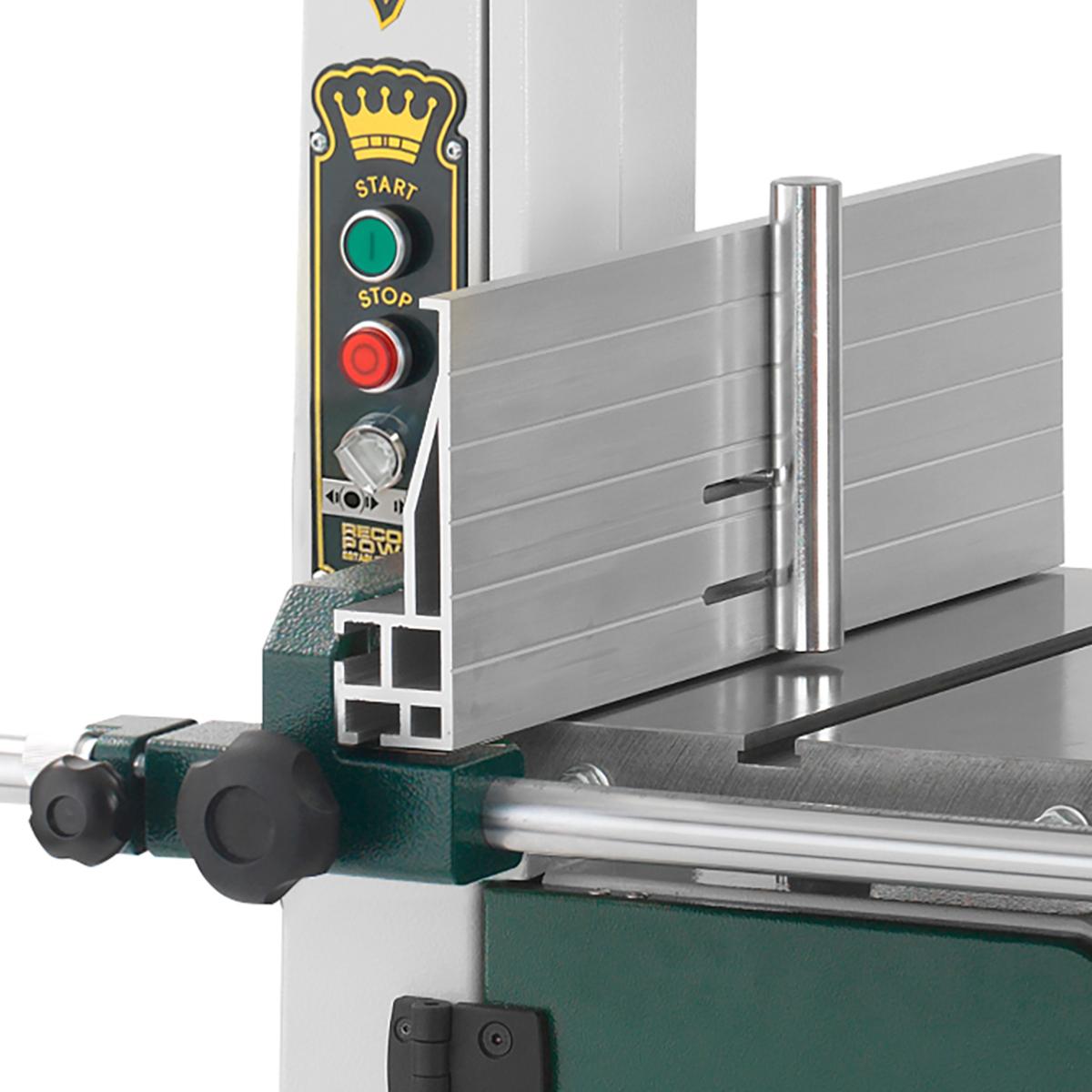 Le moteur de 2 000 W entraîne les lourdes roues en fonte avec une puissance suffisante pour faire face aux coupes les plus lourdes. Le réglage du guide à came, les guides à ressort, le relâchement de la tension de la lame et le montage du guide à double face en font une machine facile à installer et à utiliser qui vous permet de vous concentrer pleinement sur vos projets.