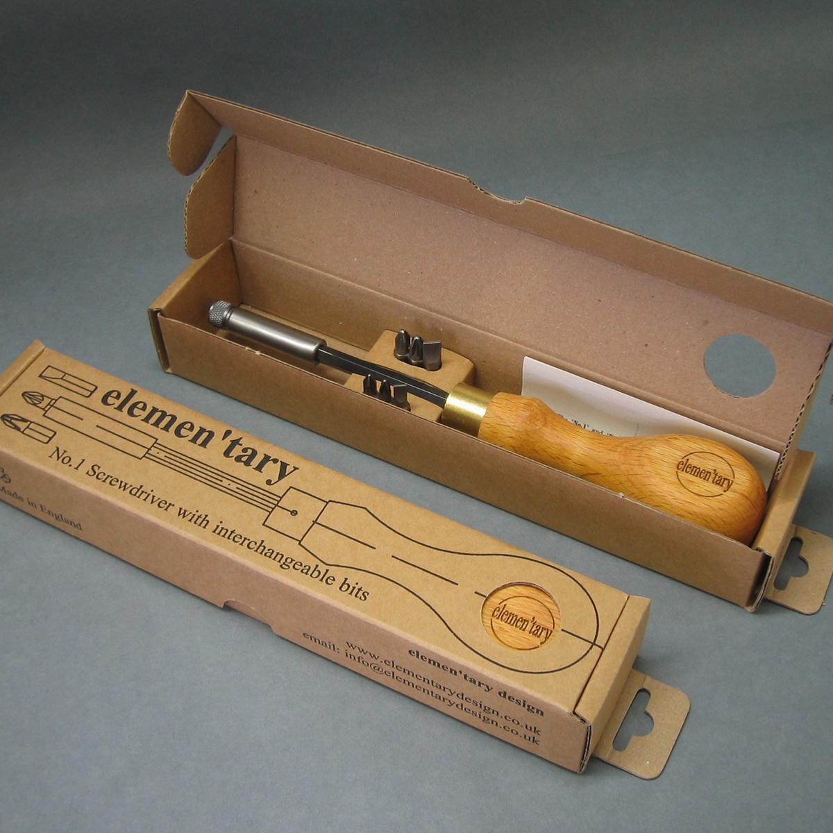 Assemblés et finis à la main dans l’atelier de Elementary Design du sud de Londres. Les tournevis sont emballés individuellement, dans des boîtes spécialement conçues.